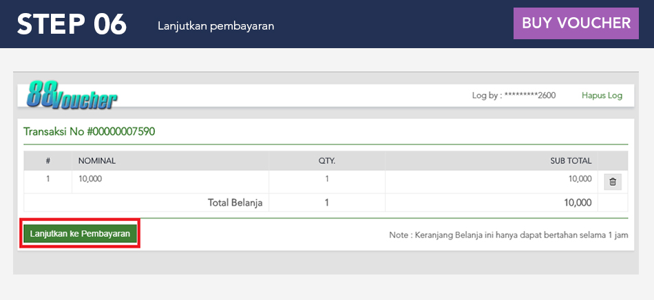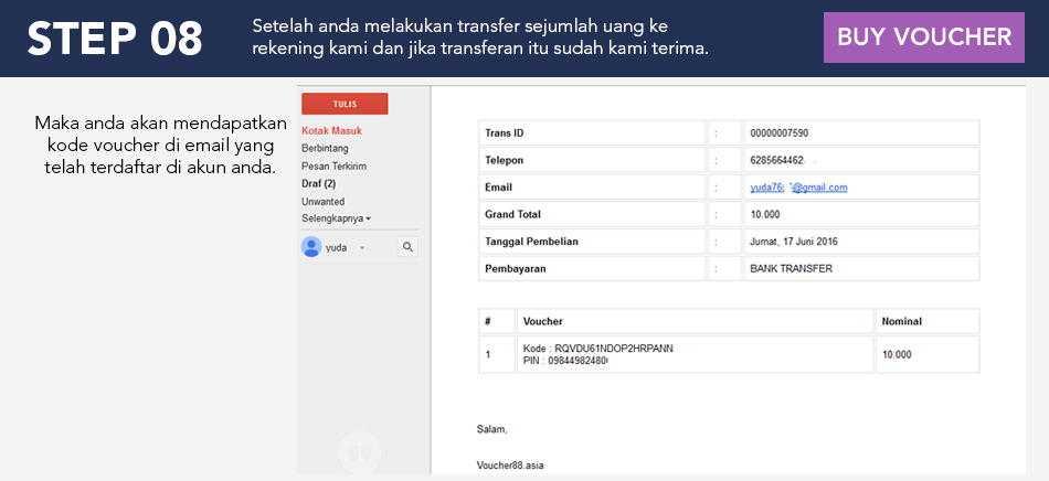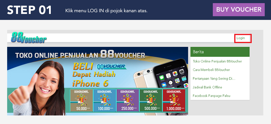 Masukkan Email dan Password. Pastikan email anda aktif, karena Seluruh transaksi di 88voucher menggunakan Email.