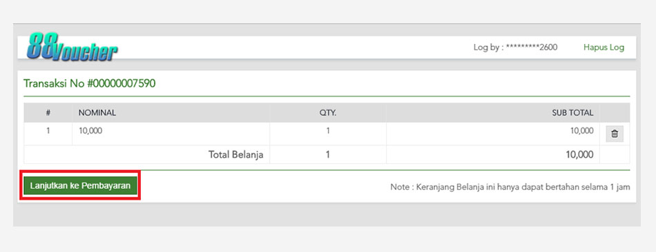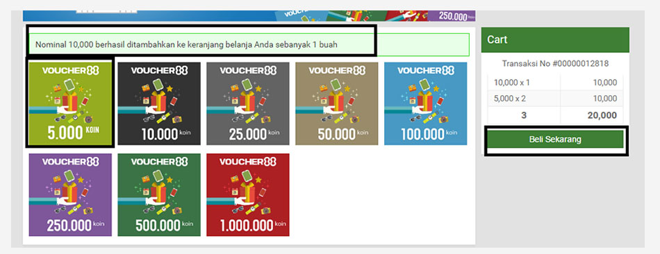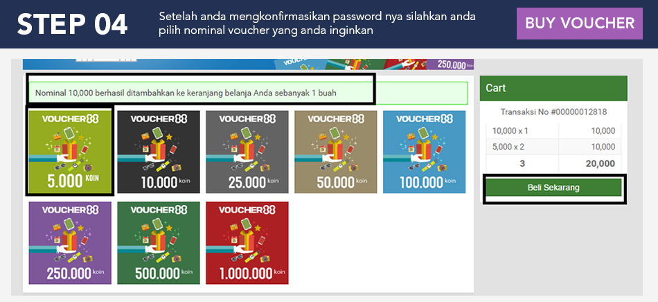 Setelah anda mengkonfirmasikan password, silahkan anda pilih nominal voucher yang anda inginkan